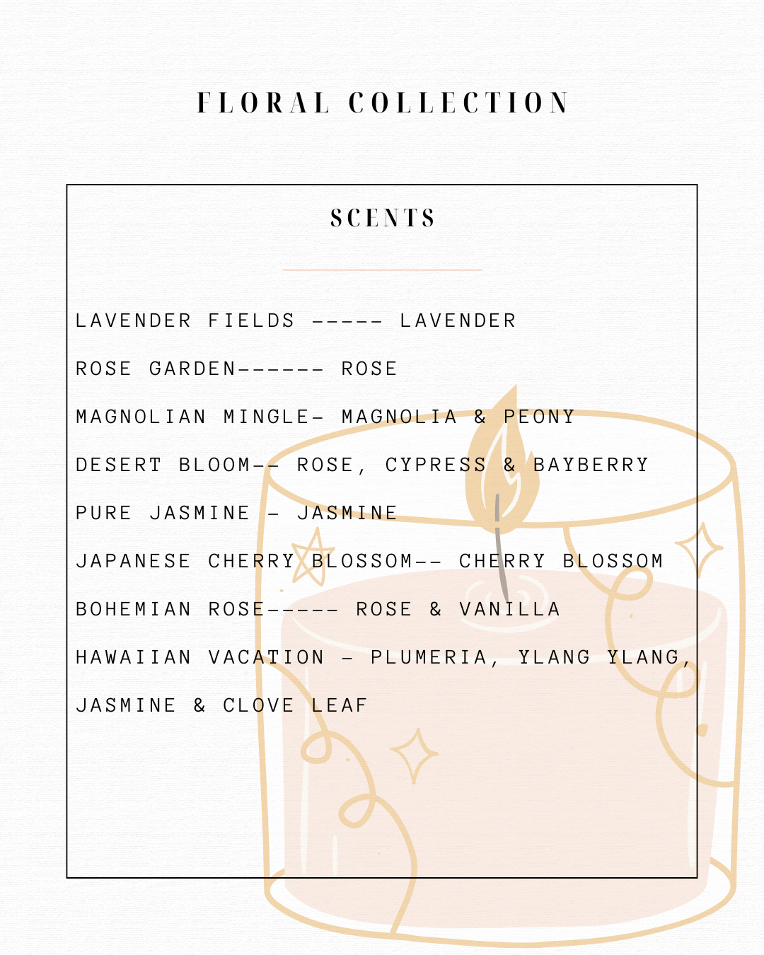 Transform your space with soothing floral scents, captured in every flicker. From delicate rose to refreshing lavender, our hand-poured candles are perfect for any moment of relaxation.